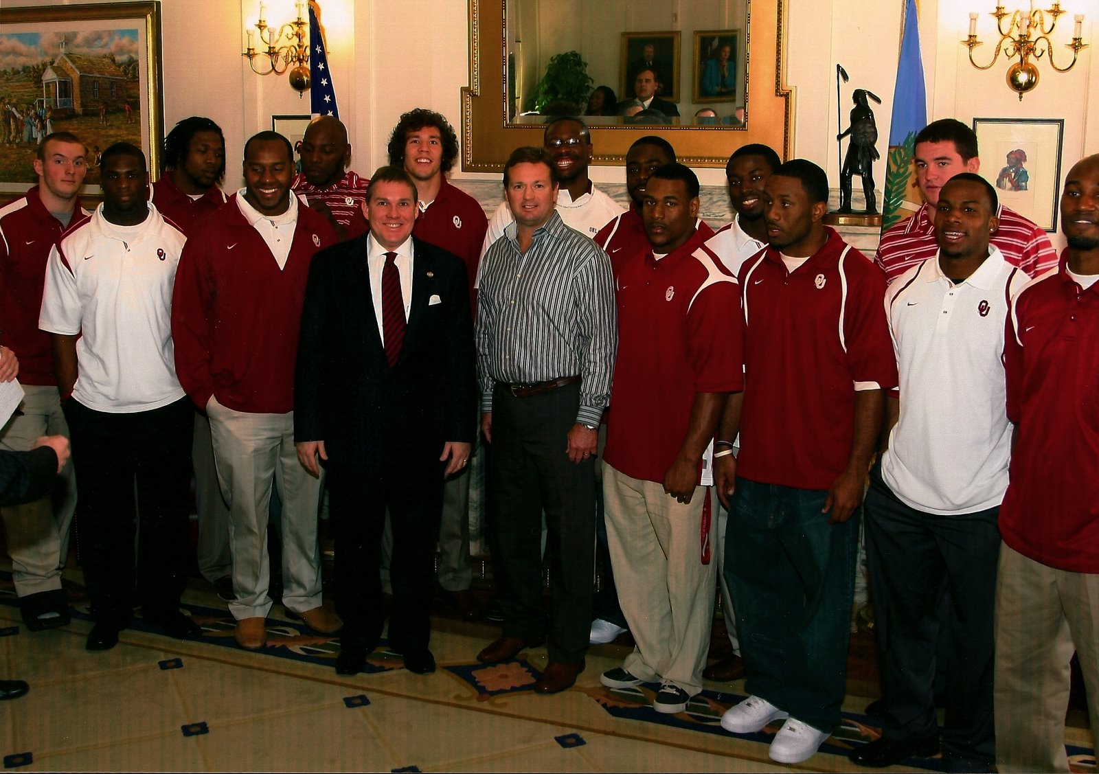 It must be rough to work down at the Capitol! My Senator got to hang out with the Heisman Trophy winner twice in a twenty-four hour period of time. The first time they spoke Cherokee and I took a photo. This week at the marble palace…well, the Senator’s expression speaks volumes.