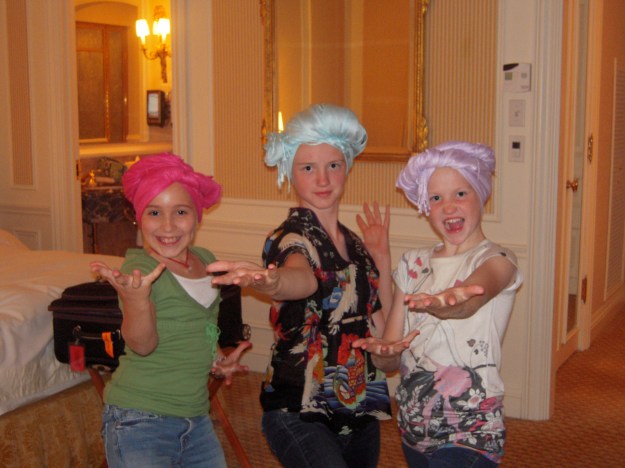Who knew there could be enough candy to fill a three story building! I treated them to these little vials of sugar while PW gave them empty, plastic bags with instructions to ‘fill them to the brim’ with candy. Our girls aren’t spoiled or anything.