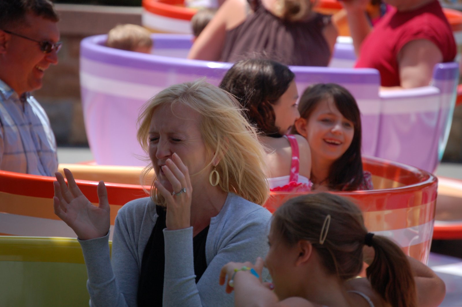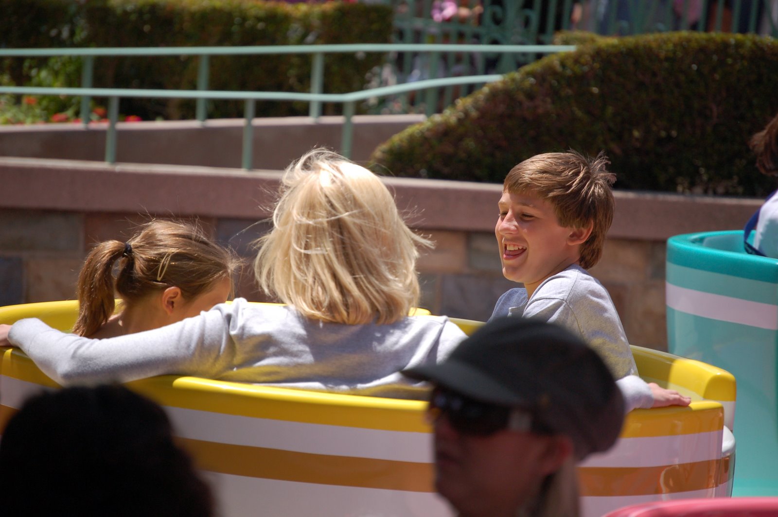 What a colossal mistake. None of us had ever spun so fast and furious. Forget about water boarding, the tea cup ride is a kinder, gentler form of torture. Just look at the joy on that face. He knew what he was doing and loved every minute of it!