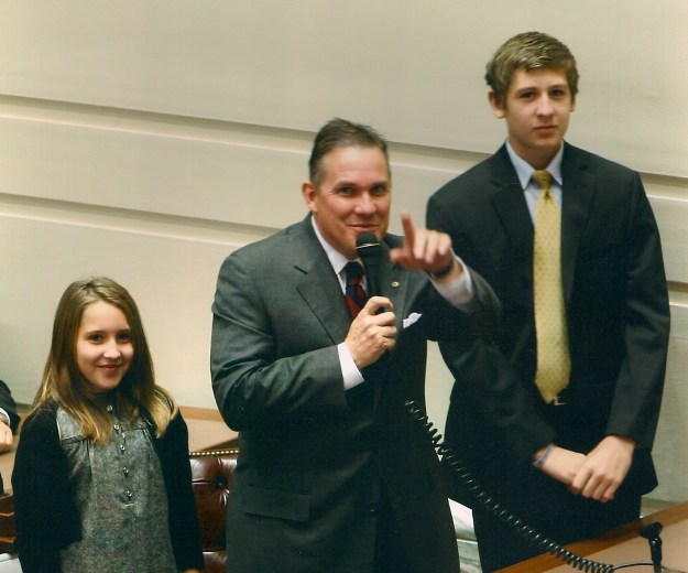 Anyway, at the Capitol that day, just prior to the actual administration of the oath of office, it is a tradition that each member take the microphone and introduce their family and friends in the Gallery. When this particular photo was taken, the Senator had just referenced his 84-year-old mother in attendance. Judging from the laughter in the chamber following his remarks, maybe he realized it might not have been the best idea to unleash her age?