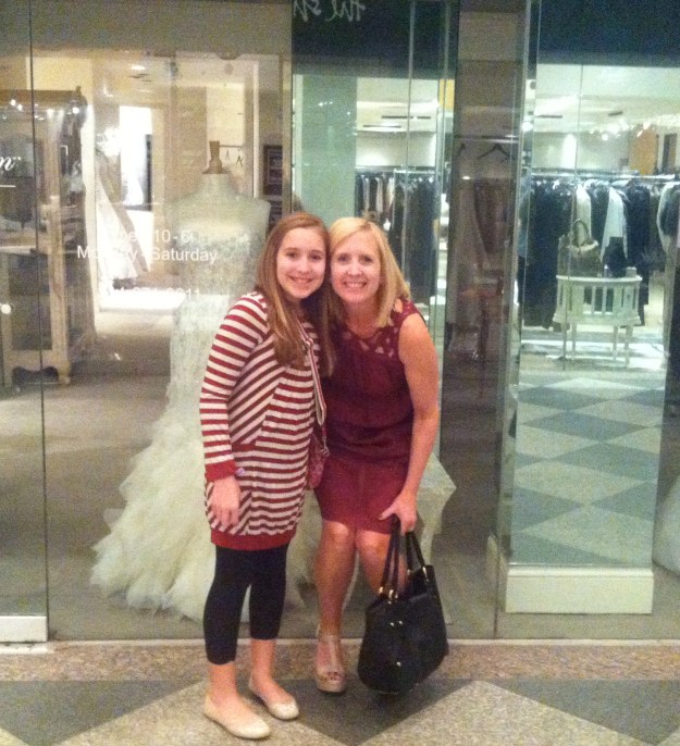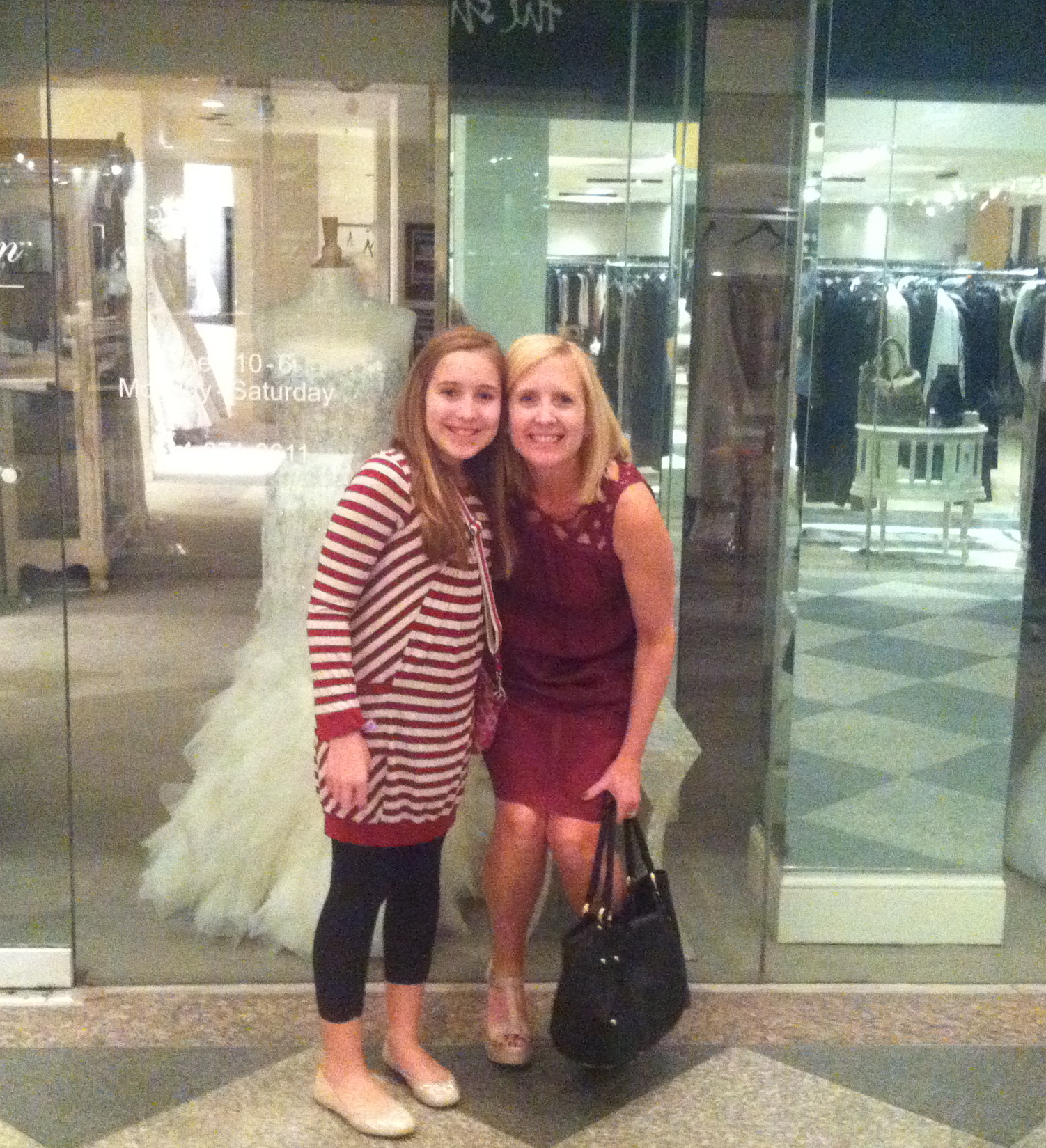 What a wonderful photo of you and your daughter in front of the wedding gown shop! That’s a keeper!