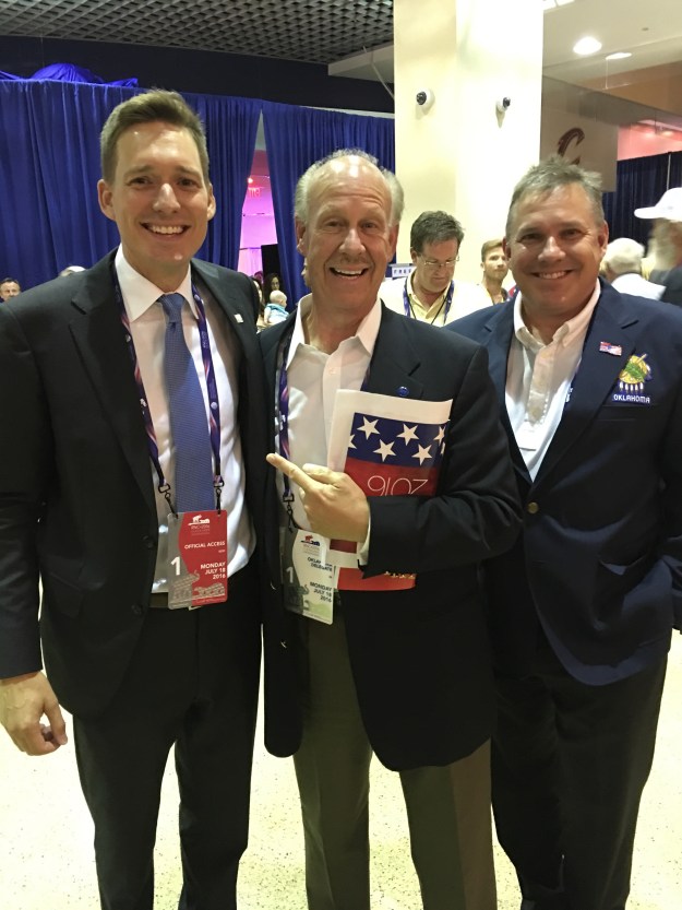 Cliff and our friend from Tulsa (center), ran into another Okie (tall, young one on the left) who will be the next head of the RNC. What a breath of fresh air he is and a great guy all around.