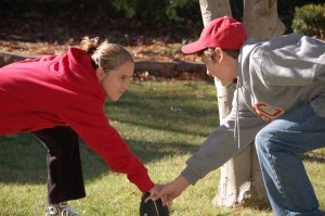 See that guy hiding in the back of the photo posted below? He is trying to remain neutral about this college football conflict. But, I know better. I really do.