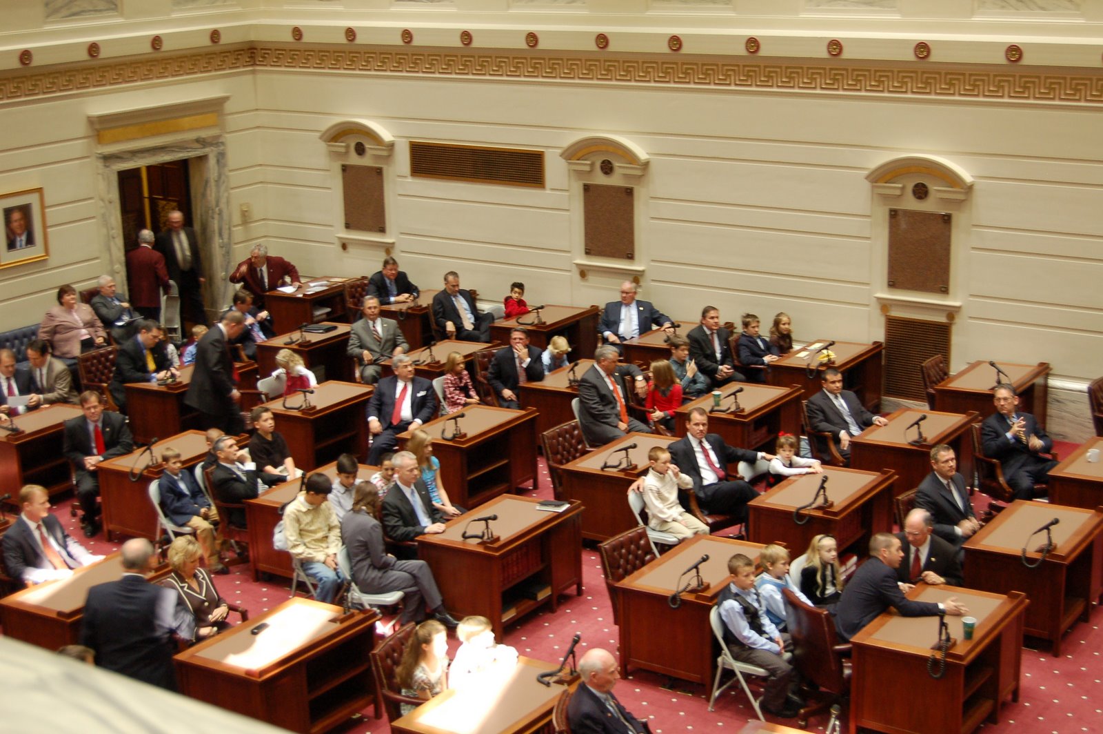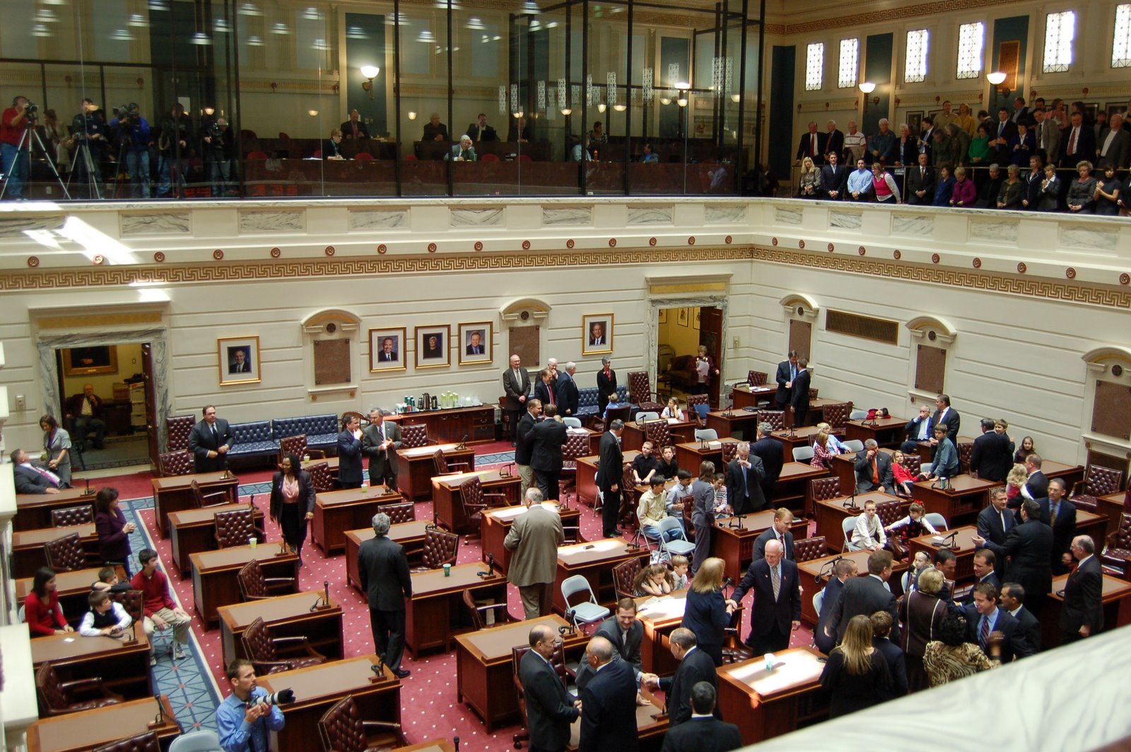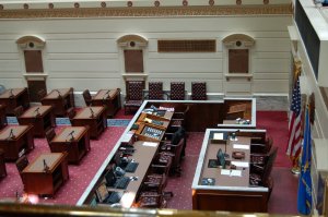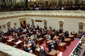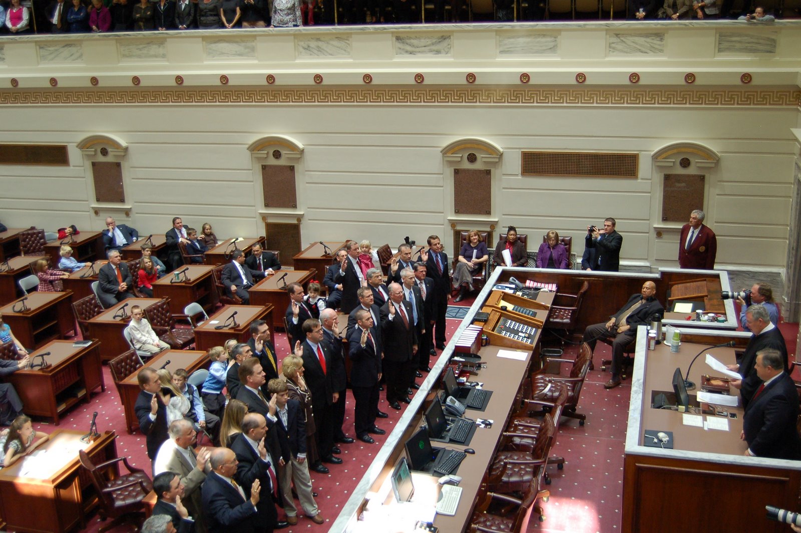 This is what the Chamber looks like full of people. On special days like today, family and friends are abundant. So are elected officials from all three branches of government. The Lieutenant Governor was on hand, the State Supreme Court’s Chief Justice administered the oath of office, former State Senator’s were in the chamber as well as many, many campaign volunteers and friends. The Governor was conspicuously missing. I wonder if he overslept?